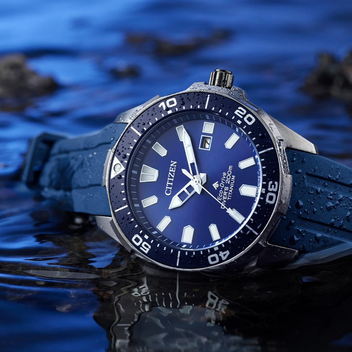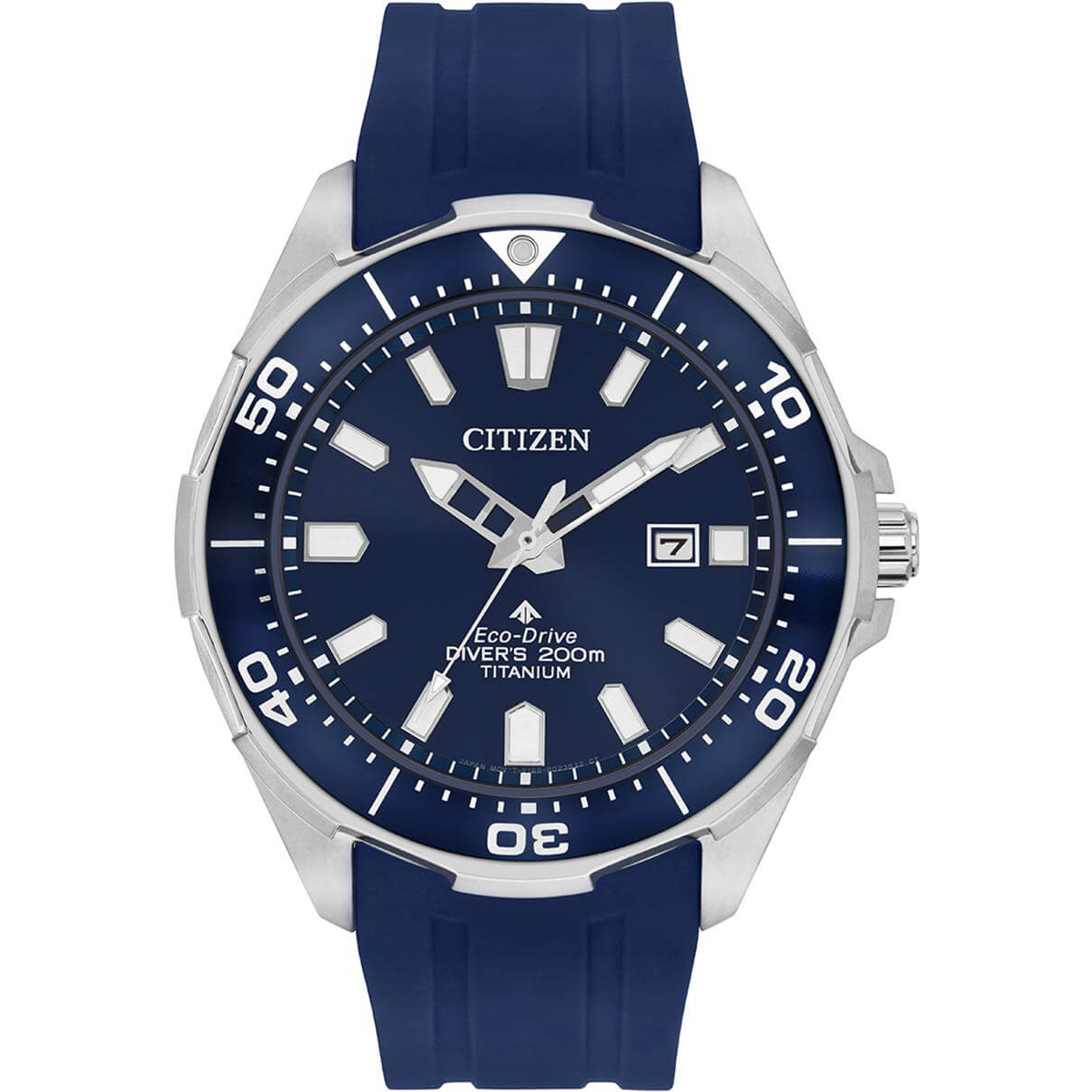 Citizen Titanium Promaster Divers Watch, BN0201-02M, powered by light, any light the Eco Drive divers watch is great for the environment as well as for divers. With a blue polyurethane strap and 200m water resistant this lightweight divers watch is great for all types of diver.