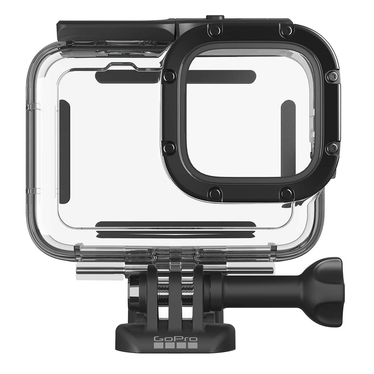 The protective housing gives your GoPro the ultimate protection for extreme activities. Your GoPro is rugged and waterproof (to 10m) right out of the box, but this housing handles anything you can throw at it. It protects from dirt and flying debris, and it’s waterproof down to 60m (196ft) for scuba diving.