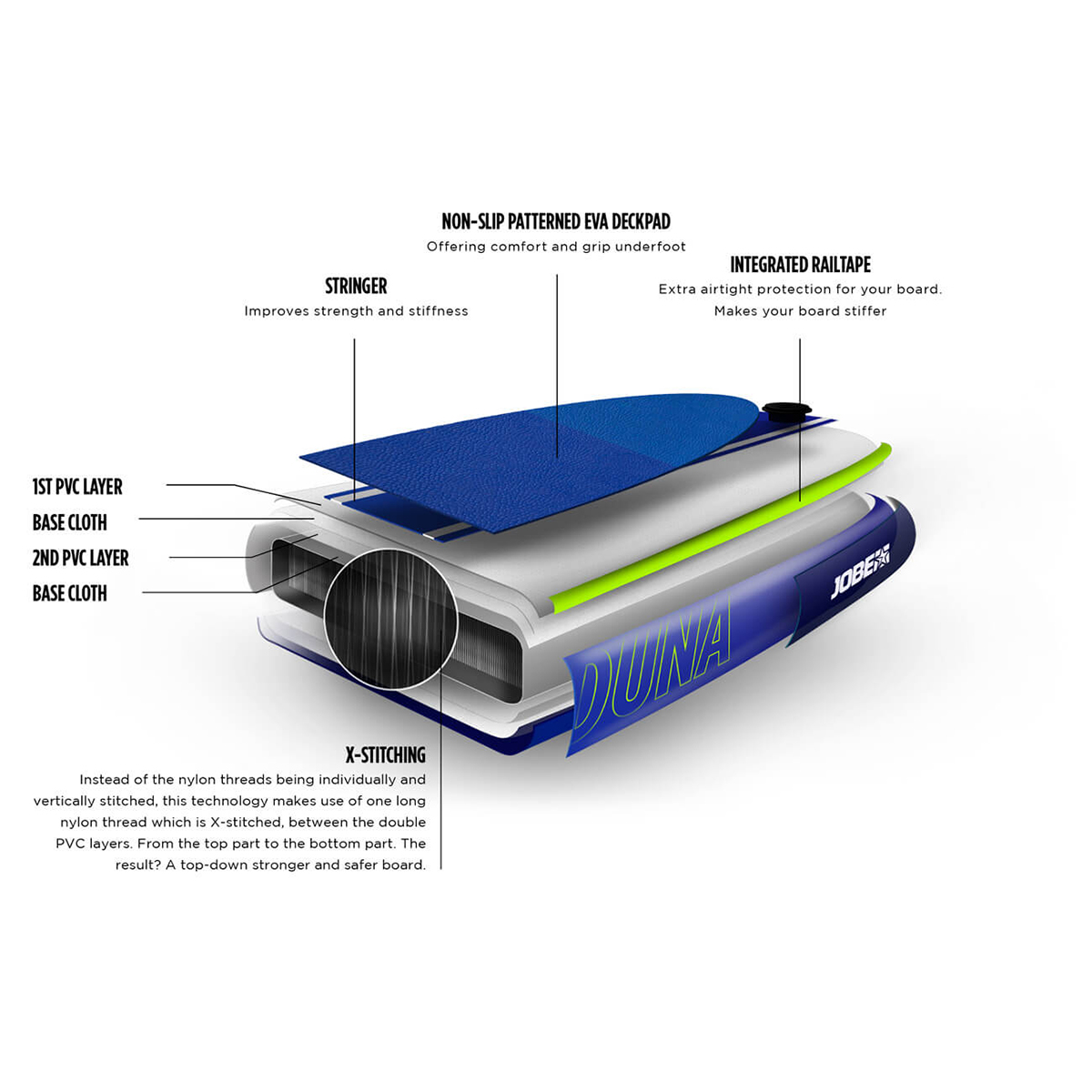 Featuring Jobe’s X-Stitching Construction, Heat Welded Seams and a top stringer the Jobe Mira is a lightweight yet stiff SUP. The added material on the rails makes the Mira even more durable. Altogether this is the usual quality you expect from Jobe but on an entry level board.