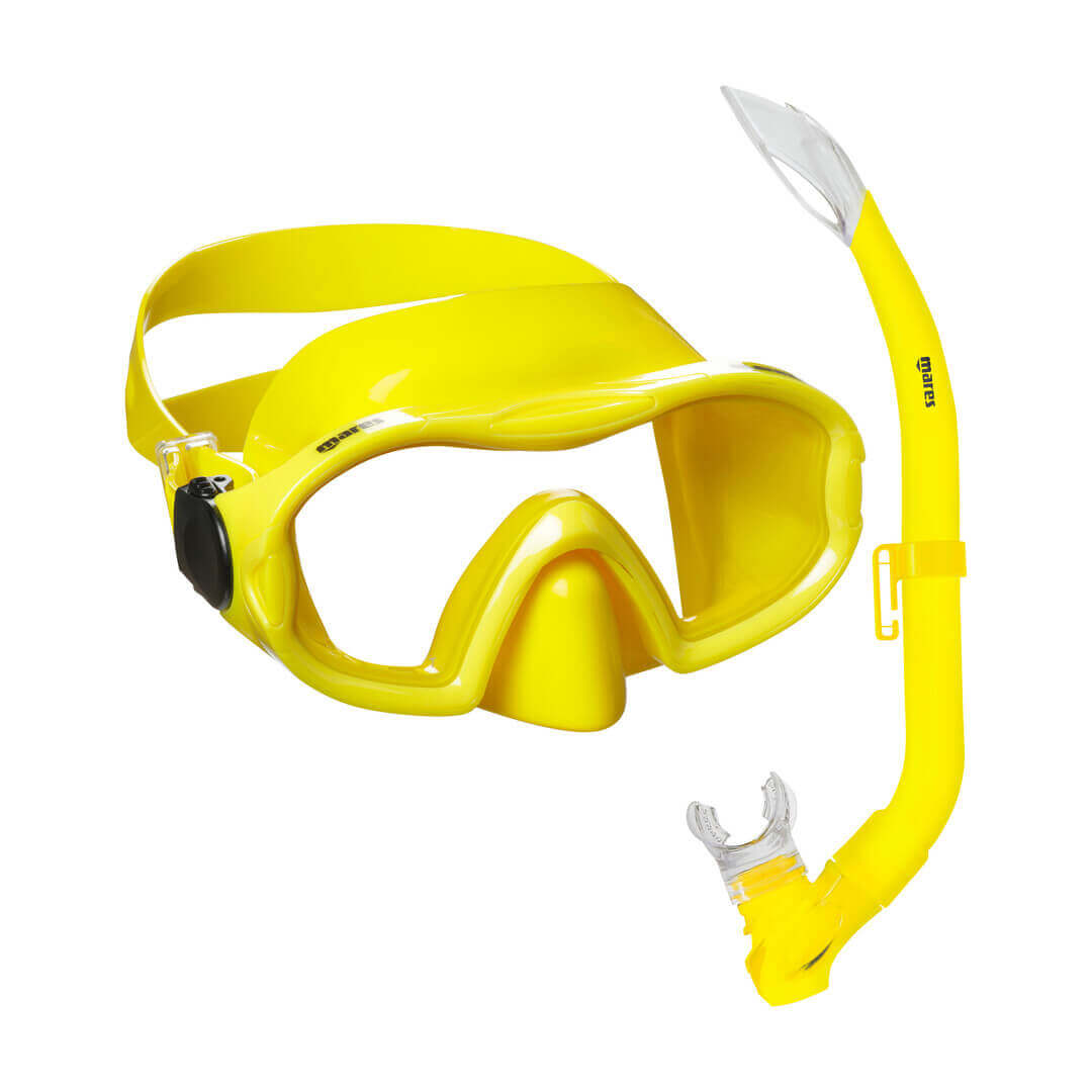 Mares Blenny Kids Mask + Snorkel Set, a brightly coloured mask + snorkel combo for kids between 4-7yrs. The Blenny combo features the popular Blenny mask and a self-draining snorkel.