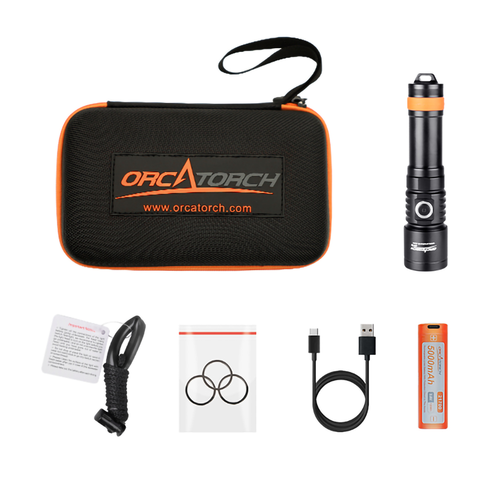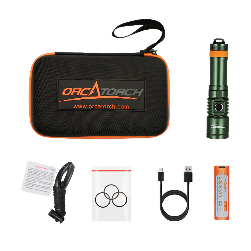 The D710 runs on one OrcaTorch 21700 5000mAh rechargeable battery with Type-C charging port, easier for you to charge it anywhere.