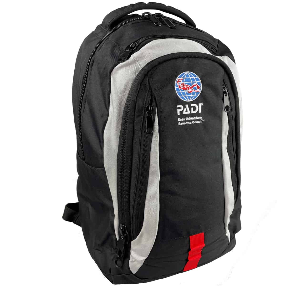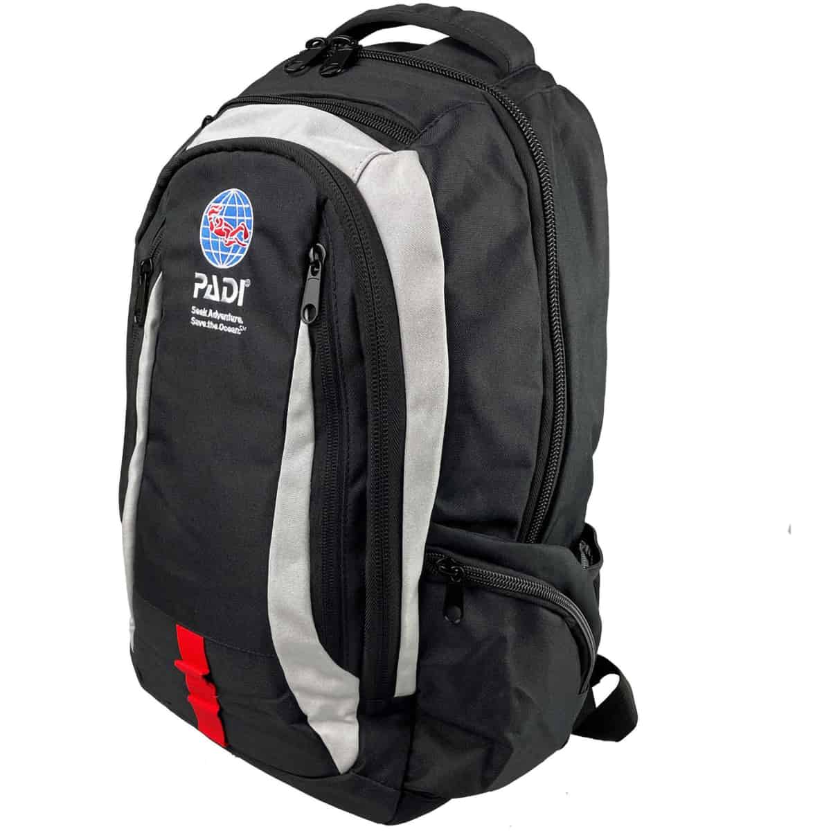 The PADI Backpack Black/Grey has been upgraded! This is the latest Official and Genuine PADI backpack in the new black/grey colour combination. Branded with PADI “Seek Adventure + Save Our Oceans”. It is the ideal backpack for carrying your PADI log book, course materials, dive computer and PADI water bottle.