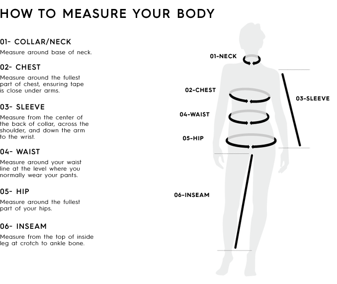 | SIZE US | SIZE UK | HEIGHT (cm) | WEIGHT (kg) | CHEST (cm) | WAIST (cm) | HIP (cm) | NECK (cm) | INSEAM (cm) |